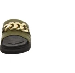 Bequeme Pantolette des Trend Labels Apple of Eden. Sie wurde aus vegetabil gegerbtem Rindsleder gefertigt. Die Innensohle besteht aus Memory Foam und ist weich gepolstert. Mit der markanten Plateausohle aus thermoplastischem Gummi haben Sie jederzeit besten Halt. Stylischer Hingucker sind die Kettenapplikation auf dem breiten Riemen und die Kontrastfarben. Eine Pantolette die sich vielseitig kombinieren lässt!