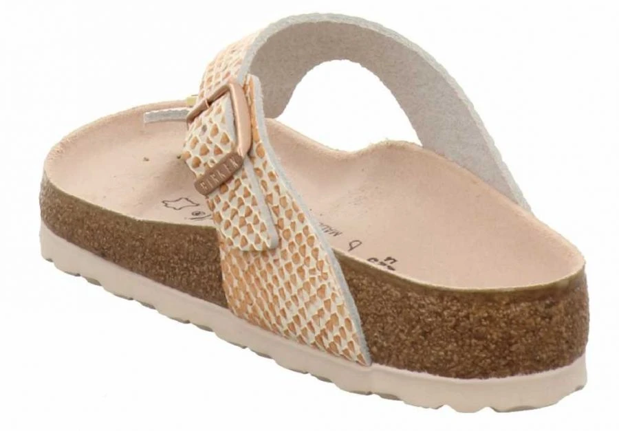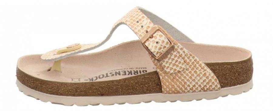 Der kontrastreiche Look macht den Gizeh zum absoluten Hingucker. Der individuell verstellbare Riemen der Sandale ist aus robustem Birko-Flor® gefertigt. Das komfortable Weichfußbett verwöhnt den Fuß den ganzen Tag.