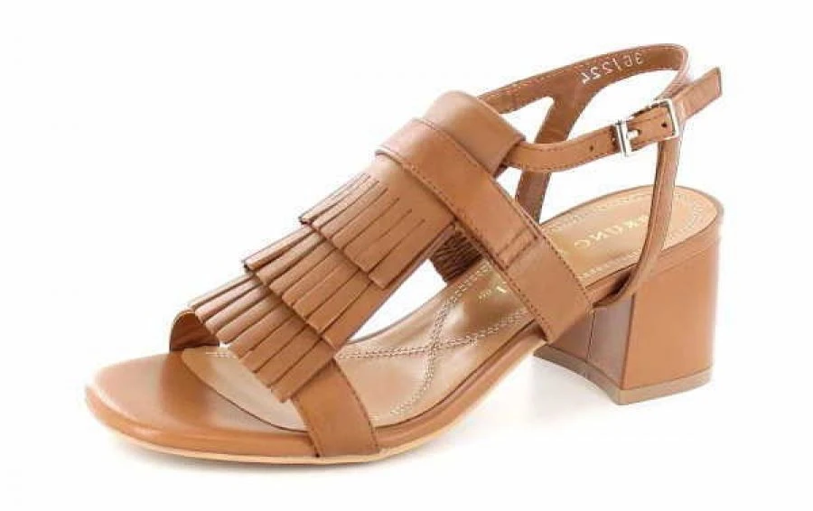 Must-Have Sandale mit Haferlasche in der Farbe braun. Weiches Leder als Innen- und Außenmaterial. Ein verstellbares Riemchen am Knöchel sorgt für den perfekten Sitz.