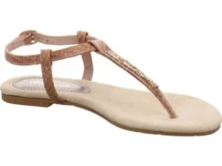 Das bequeme fußbett und die naturfarbene sohle verleihen einen alltagstauglichen Akzent.