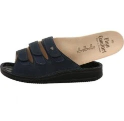 Klassische Pantolette von Finn Comfort aus weichem Nubuk Leder. Sie bietet ein hohes Maß an Tragekomfort durch optimale Passform, den drei verstellbaren Klettverschlüssen und dem anatomisch geformten Wechselfußbett. Sie können für Ihren persönlichen Gehkomfort Ihre eigenen orthopädischen Einlagen verwenden. Eine tolle Pantolette für jeden Tag!