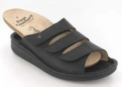 Klassische Pantolette von Finn Comfort aus geprägtem Rindsleder. Sie bietet ein hohes Maß an Tragekomfort dank optimaler Passform, den drei verstellbaren Klettverschlüssen und dem anatomisch geformten Wechselfußbett. Sie können für Ihren persönlichen Gehkomfort Ihre eigenen orthopädischen Einlagen verwenden. Eine tolle Pantolette für jeden Tag!