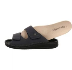 Klassische Pantolette aus dem Hause Finn Comfort. Obermaterial und Futter bestehen aus hochwertigem Leder. Dank der beiden stufenlos verstellbaren Klettriemen passt sich dieser Schuh Ihrem Fuß optimal an. Das anatomisch geformte Wechselfußbett aus Kork und die hochwertige Handnaht bieten ein hohes Maß an Tragekomfort und optimale Passform. Für Ihren persönlichen Gehkomfort können Sie Ihre eigenen orthopädischen Einlagen verwenden. Die elastische PU-Sohle bietet jederzeit besten Halt. Die Pantolette Riad ist ihr perfekter Begleiter für jeden Tag.