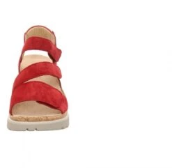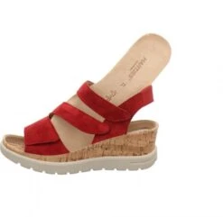 Sommerliche Keilsandale des österreichischen Herstellers Hartjes in Weite H. Das Obermaterial besteht aus weichem Veloursleder. Für das Innenfutter wurde bestes Glattleder verwendet. Die mit Leder überzogene Korksohle ist austauschbar. Für Ihren persönlichen Gehkomfort können Sie Ihre eigenen orthopädischen Einlagen verwenden. Dank der drei stufenlos verstellbaren komfortabel breiten Klettriemen lässt sich dieser feminine Schuh perfekt an Ihren Fuß anpassen. Für noch mehr Bequemlichkeit sorgt die Polsterung am Fersenriemchen. Die Laufsohle in Kontrastfarbe ist extra dick, rutschhemmend, elastisch und flexibel. Die Absatzhöhe beträgt 6 cm. Eine schöne und bequeme Sandale die vielseitig kombinierbar ist und perfekt für warme Tage!