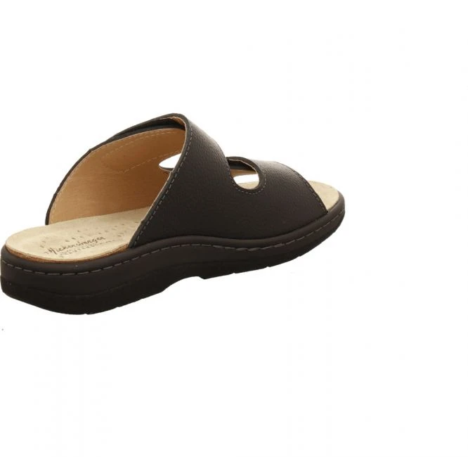 Schöne und bequeme Pantoletten für Herren von der Qualitäts-Marke Hickersberger aus einem feinen hochwertigem Ledermaterial in der Farbe schwarz.