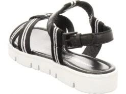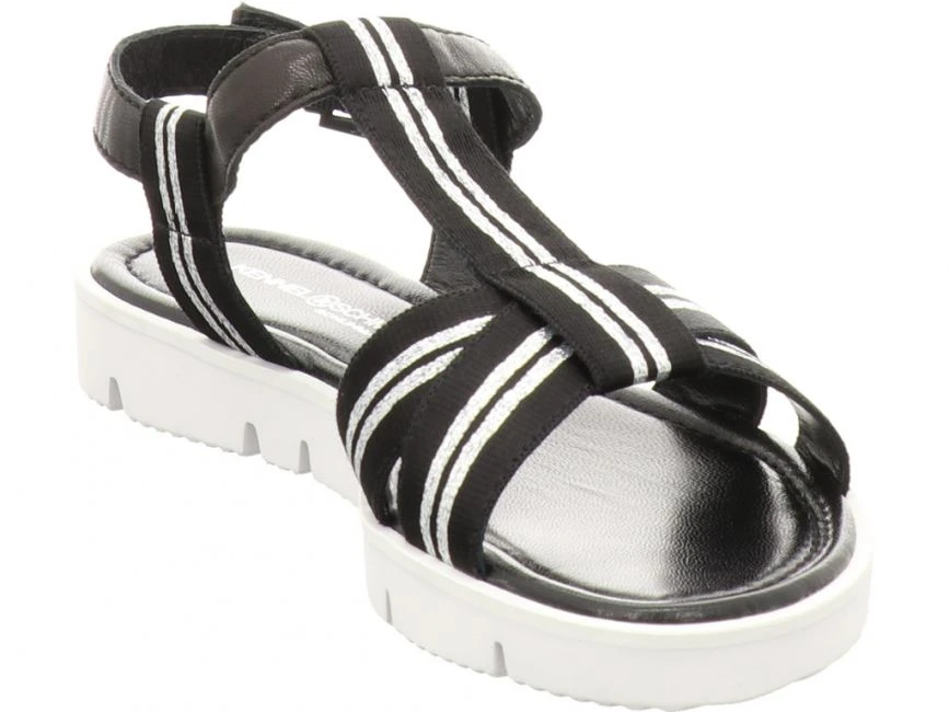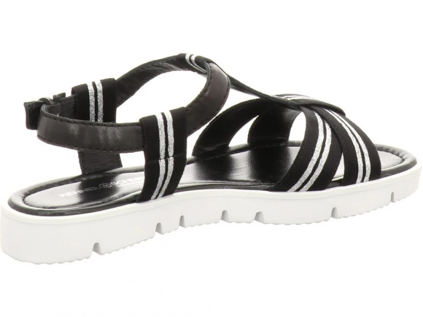 Sportive Sandale aus dem Hause Kennel und Schmenger. Die klassischen breiten Riemen aus einem hochwertigen Mix aus Textil und Leder, werden durch silberfarbene Streifen modisch verfeinert. Mit der bequemen Laufsohle haben Sie jederzeit besten Halt. Eine klassische und bequeme Sandale für jeden Tag!