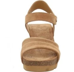 Elegante Keilsandalette von Panama Jack. Das Obermaterial besteht aus hochwertigem Veloursleder, das Innenfutter aus bestem Glattleder. Sie verfügt über eine mit Leder überzogene, anatomisch geformte Innensohle. Dank dem stufenlos verstellbaren Klettriemen passt sich diese schöne Sandalette perfekt an Ihren Fuß an. Mit der leichten, rutschfesten und robusten EVA-Sohle haben Sie jederzeit besten Halt. Die Absatzhöhe beträgt 6,5 cm. Perfekt für die schönsten Tage im Jahr! Hergestellt in Spanien!