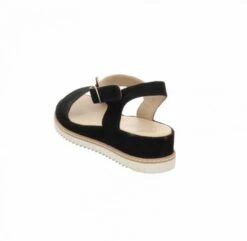 Sandale von SIOUX aus Ziegenveloursleder mit einem Riemchen aus geprägtem Ziegenveloursleder in Flecht-Optik sowie einem verstellbaren Riemchen mit Druckknopf und Schließe, unter der sich ein elastischer Einsatz befindet.