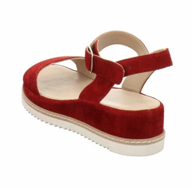 Sandale von SIOUX aus Ziegenveloursleder mit einem Riemchen aus geprägtem Ziegenveloursleder in Flecht-Optik sowie einem verstellbaren Riemchen mit Druckknopf und Schließe, unter der sich ein elastischer Einsatz befindet.