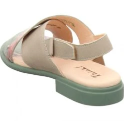 Modische Sandale von von Think. Das Obermaterial besteht aus softem Leder mit Blumendruck. Das weich gepolsterte Fußbett ist mit hochwertigem Leder bezogen. Der Fersenriemen verfügt über einen stufenlos vestellbaren Klettriemen. Mit der flexiblen, rutschhemmenden Sohle haben Sie besten Halt. Der kleine Blockabsatz hat eine Höhe von 2 cm. Eine bequeme und vielseitig kombinierbare Sandale für die warmen Tage!