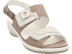 Bequeme und modische WaldlĂ€ufer Sandale aus besonders weichem Kalbleder, Komfortables Lederfutter und leicht zu verstellende Klettriemchen. Herausnehmbares, anatomisches FuĂbett, mit Leder ĂŒberzogen – dieses Modell ist geeignet fĂŒr lose Einlagen. Besonders komfortable und gedĂ€mpfte Gummi-Laufsohle.