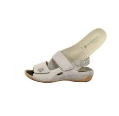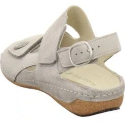 Modische Sandale von WaldlĂ€ufer in Weite H mit schmaler Ferse. Das Obermaterial besteht aus hochwertigem Leder welches teils metallisch glĂ€nzend geprĂ€gt ist. FĂŒr das Innenfutter wurde weiches Leder verarbeitet. Die mit Leder bezogene Innensohle ist austauschbar. FĂŒr Ihren persönlichen Gehkomfort können Sie Ihre eigenen orthopĂ€dischen Einlagen einsetzen. Dank der beiden stufenlos verstellbaren Klettriemen und dem Riemen mit Dornschnalle an der Ferse passt sich diese elegante Sandale perfekt an Ihren FuĂ an. Ein Hingucker ist die Applikation auf dem vordersten Riemen, die Naht in Kontrastfarbe und die Laufsohle in Korkoptik. Eine vielseitige und luftig-leichte Sandale fĂŒr die warmen Tage!