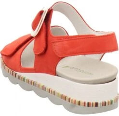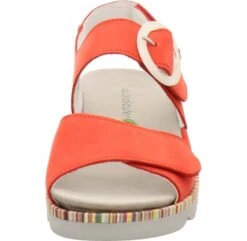 Modische Sandale von WaldlĂ€ufer in Weite K. Das Obermaterial besteht aus hochwertigem Nubukleder. FĂŒr das Innenfutter wurde bestes Leder verarbeitet. Die mit Leder bezogene Innensohle ist austauschbar. FĂŒr Ihren persönlichen Gehkomfort können Sie Ihre eigenen orthopĂ€dischen Einlagen verwenden. Dank der drei stufenlos verstellbaren Klettriemen und der schmalen Ferse passt sich diese schöne Sandale Ihrem FuĂ optimal an. Auch modisch lĂ€sst sie nichts zu wĂŒnschen ĂŒbrig. Die farbenfroh gestreifte Umrandung der Sohle und die modische Zierschnalle machen dieses Modell zum Hingucker! Eine vielseitige und luftig leichte Sandale fĂŒr warme Sommertage!