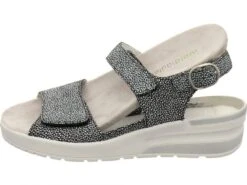 Besonders bequeme Sandalette fĂŒr die warmen Sommertage. Der Schuh bietet durch seine Weite H eine bequeme Passform. Zudem sind die Einlegesohlen herausnehmbar und fĂŒr lose Einlagen geeignet. Die PU-Sohle bietet viel FlexibilitĂ€t und Leichtigkeit. Besonders komfortable und gedĂ€mpfte Gummi-Laufsohle.