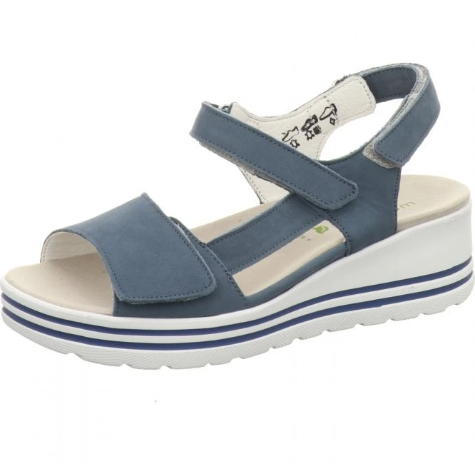 Modische Sandale von WaldlĂ€ufer in Weite H. Das Obermaterial besteht aus hochwertigem Nubukleder. FĂŒr das Innenfutter wurde bestes Leder verarbeitet. Die mit Leder bezogene Innensohle ist austauschbar. FĂŒr Ihren persönlichen Gehkomfort können Sie Ihre eigenen orthopĂ€dischen Einlagen verwenden. Dank der drei stufenlos verstellbaren Klettriemen und der schmalen Ferse passt sich diese schöne Sandale Ihrem FuĂ optimal an. Auch modisch lĂ€sst sie nichts zu wĂŒnschen ĂŒbrig. Die EVA-Luftpolstersohle in Kontrastfarbe mit passenden Zierstreifen macht dieses Modell zum Hingucker! Eine vielseitige und luftig leichte Sandale fĂŒr warme Sommertage!